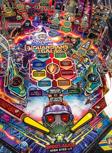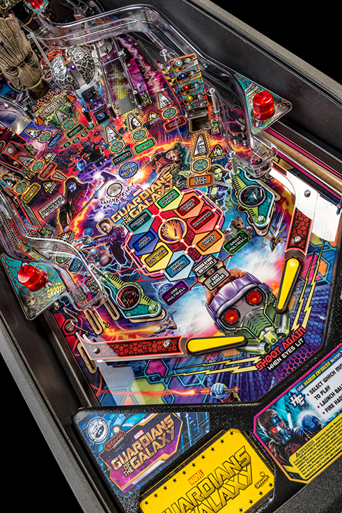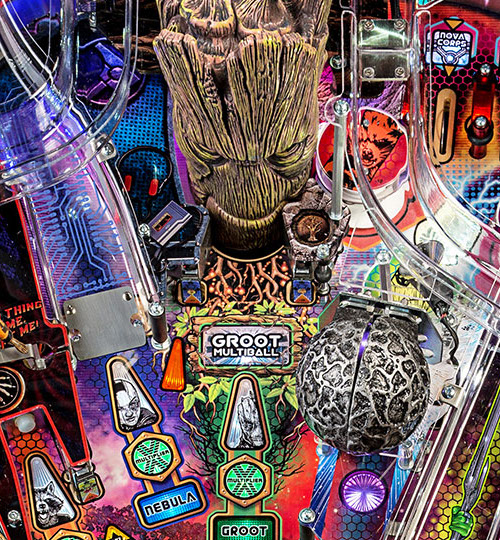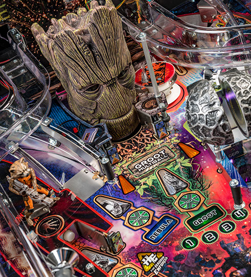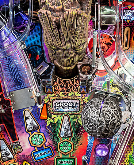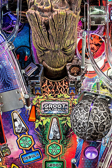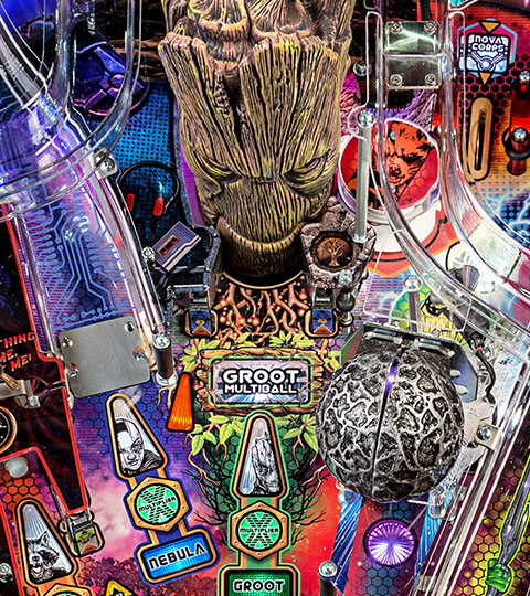 Stern’s Guardians of the Galaxy Pro models are packed with features that provide an irresistible gameplay experience. Each game features a sculpted and interactive ball-eating Groot. In addition, a custom sculpted Rocket figure will keep players on their toes as it blasts the ball back at rocket speed. Color-changing inserts highlight the mysterious and interactive Orb, which opens to reveal the powerful Infinity Stone.