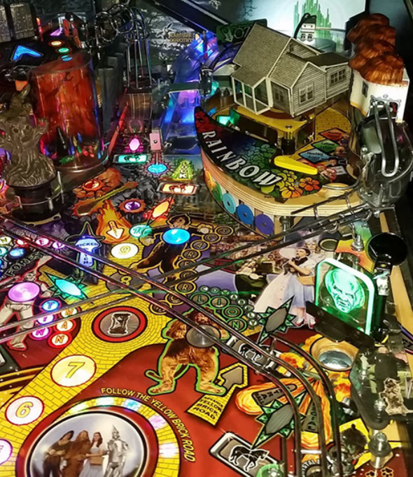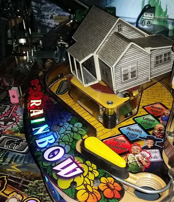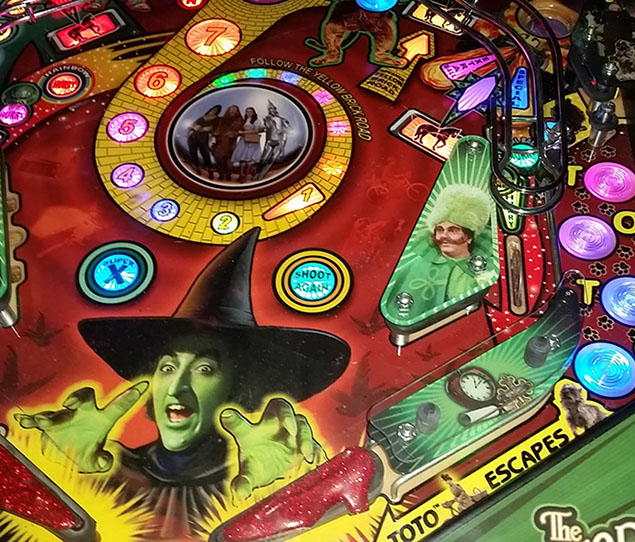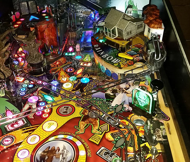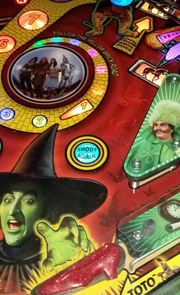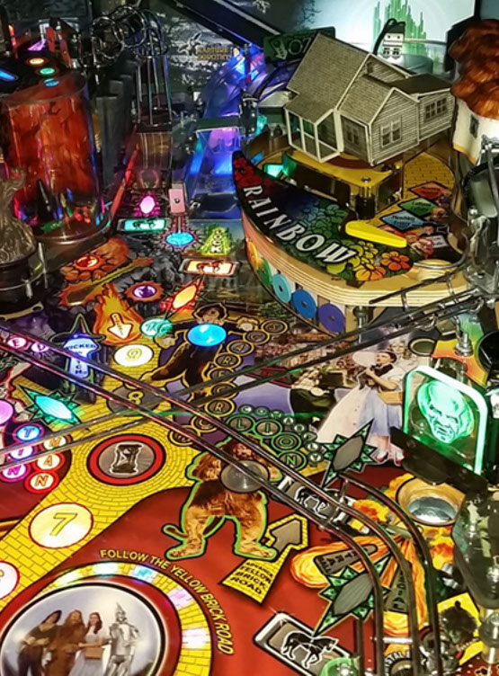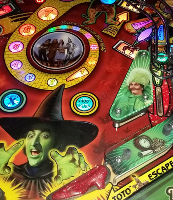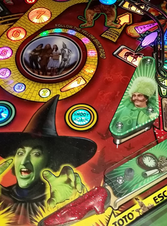 A stunning game based on the 1939 motion picture classic, the Wizard of Oz – 75th Anniversary Edition is great fun and features several industry firsts, including the use of a LCD HD-Quality monitor, rich audio, and includes a hand-drawn playfield, four major mechanical toys (Dorothy’s Spinning House, the Witch’s Castle, Flying Monkey, Melting Witch) and 4 custom toys/playfield additions (Tornado, Castle Walls, Toto in Basket, and Lollipop Decals).
